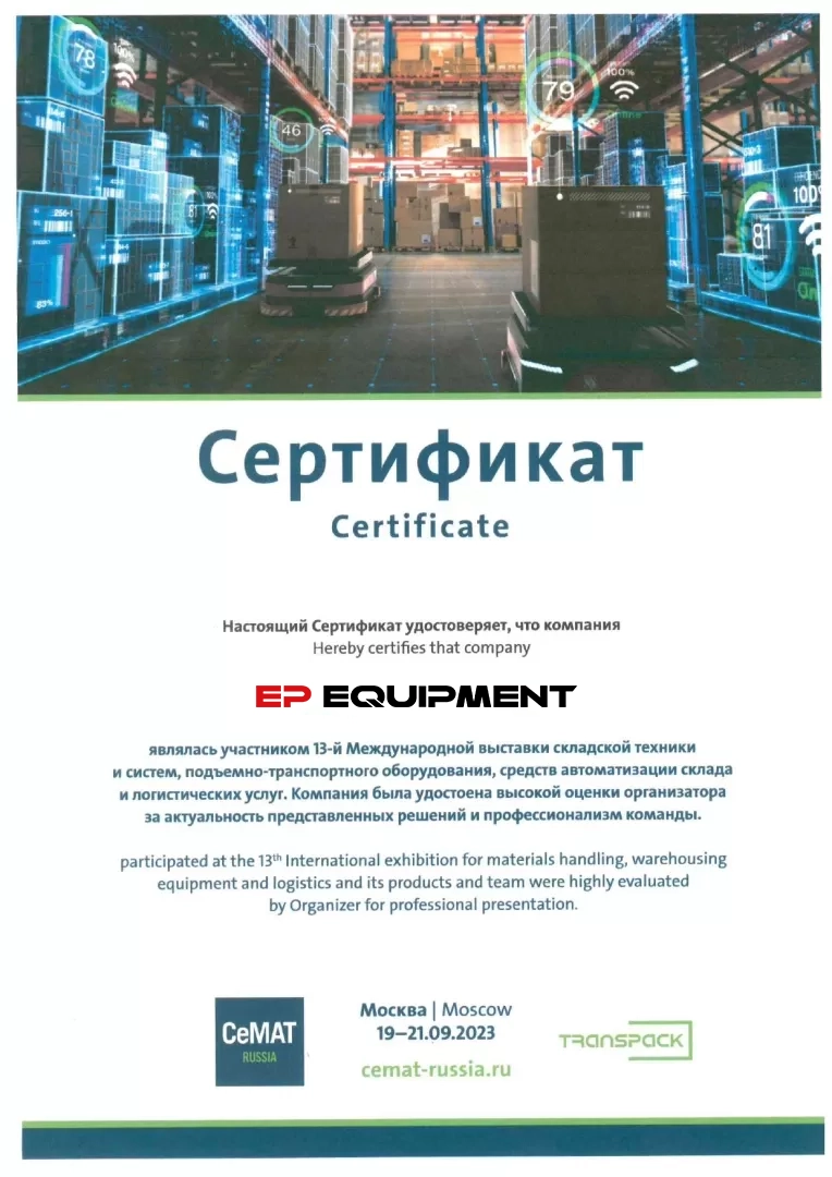 На всю складскую технику бренда EP-Equipment действует гарантия на заводской брак 2 года или 2000 моточасов (смотря что наступит раньше), а на АКБ — до 5 лет. Вы можете расширить свою гарантию с двух до четырёх лет, если при покупке техники заключите с нами дополнительный договор на сервисное обслуживание техники.