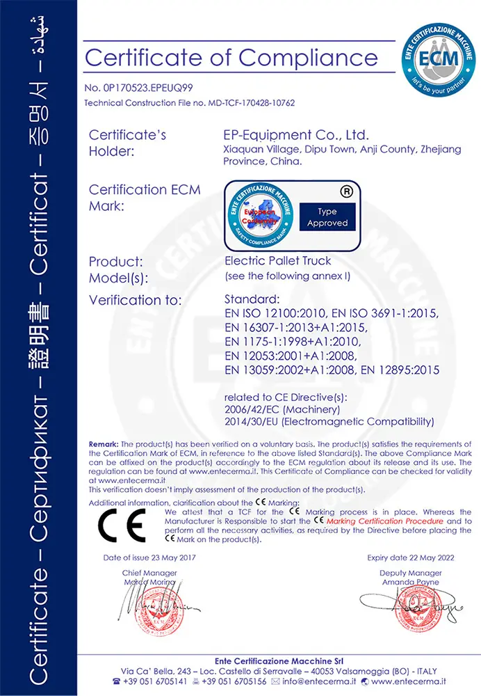 На всю складскую технику бренда EP-Equipment действует гарантия на заводской брак 2 года или 2000 моточасов (смотря что наступит раньше), а на АКБ — до 5 лет. Вы можете расширить свою гарантию с двух до четырёх лет, если при покупке техники заключите с нами дополнительный договор на сервисное обслуживание техники.